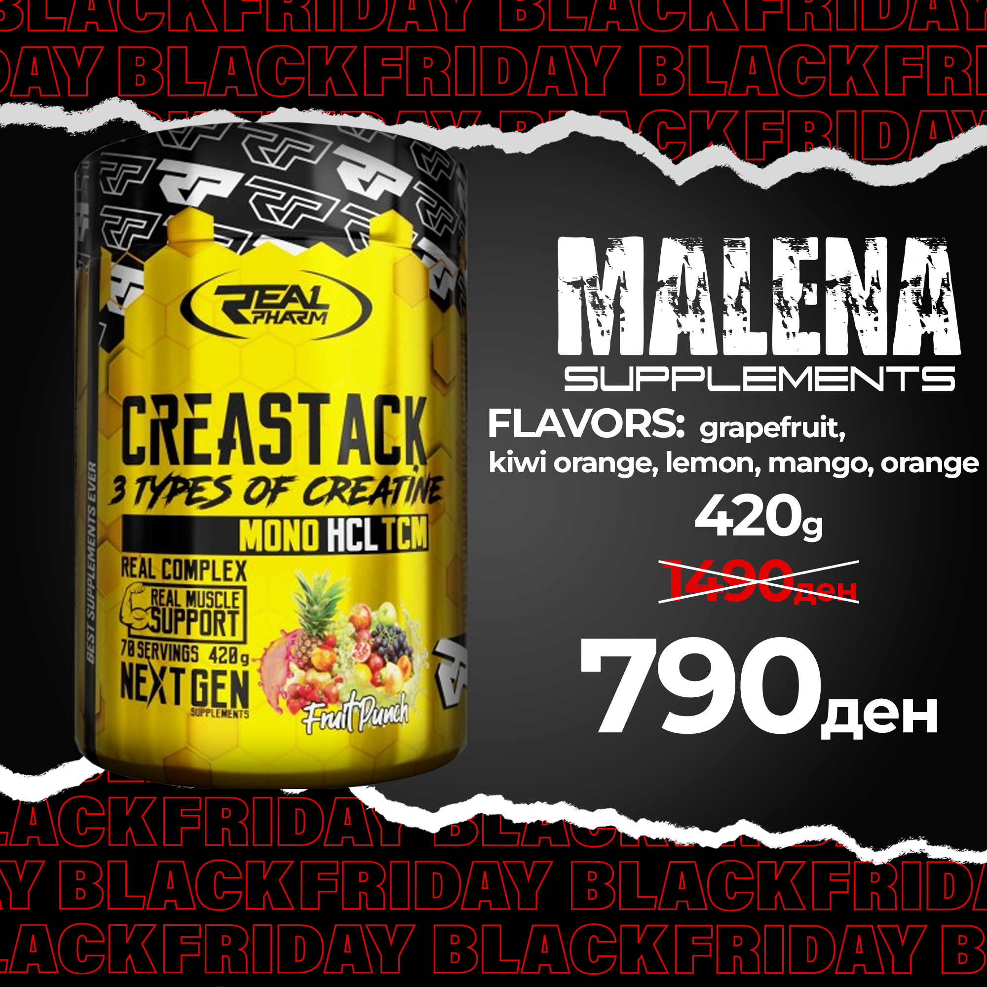 Real Pharm Crea Stack 3 types of creatine 420g